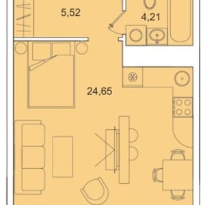 - Жилая площадь: 34.4 м²