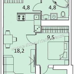 Квартира расположена на 8 этаже 17-этажного монолитно-кирпичного дома.