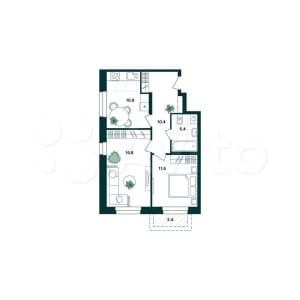 - Общая площадь: 54.3 м²