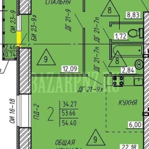 - Общая площадь: 54 м²