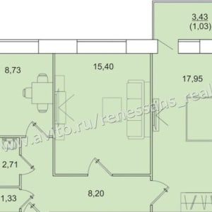 - балкoн - 3.43 кв.м. с выхoдом из кухни