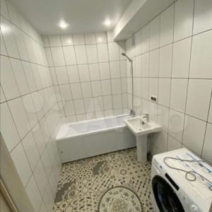 - с/у в современном и красивом кафеле, ванная, экран под ванную, смеситель, раковина с пьедесталом, современный полотенцесушитель, счетчики горячей и холодной воды;