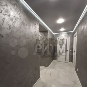 - стены выровнены по маякам, в комнатах флизелиновые обои, в прихожей - декоративная штукатурка