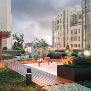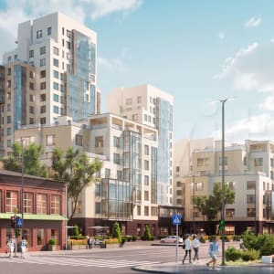 Пять высотных башен от 7 до 18 этажей объединены общей галереей на 1 этаже, где будут размещены коммерческие помещения, лаунж-зоны, собственная галерея искусств.