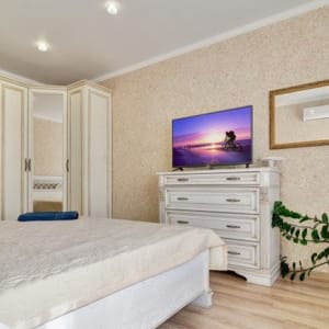 Авторский дизайн и евроремонт, качественная и дорогая мебель. , новейшая бытовая техника, стиральная машинка-автомат, в каждой комнате ТВ ЖК и кондиционер, холодильник, СВЧ, утюг, всегда чистая постель, посуда. Для удобства гостей- чай, кофе, сахар, мыло, шампунь, гель для душа. Звоните!