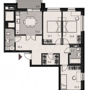 - Комнат в квартире: 3