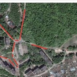 На фото участок отмечен зелёной, красной, синей линиями