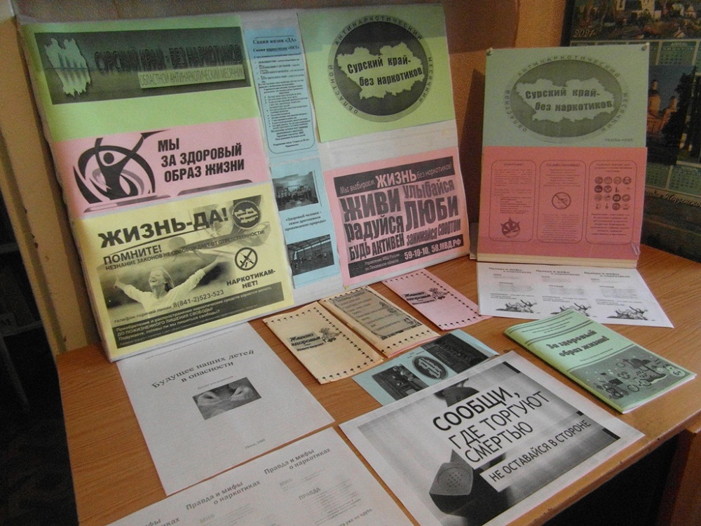 В период с 4 по 24 сентября 2023 года на территории Пензенской области проходит областная антинаркотическая акция «Сурский край – без наркотиков!». 6 сентября 2023 г. библиотека с.Дмитриевка присоединились к проведению данной акции. В библиотеке оформлен информационный стенд. Подготовлены и распространяются информационные буклеты: "Сообщи, где торгуют смертью", "Жизнь без наркотиков", "Мы за здоровый образ жизни» и другие.