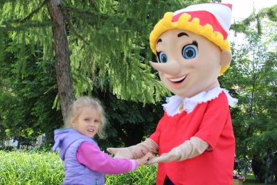 Отдельное внимание было уделено малышам – для них было проведено шоу с ростовой куклой Буратино, открыт сухой бассейн, так называемый «Колодец желаний», у которого ребят весь день развлекала Лиса Патрикеевна.