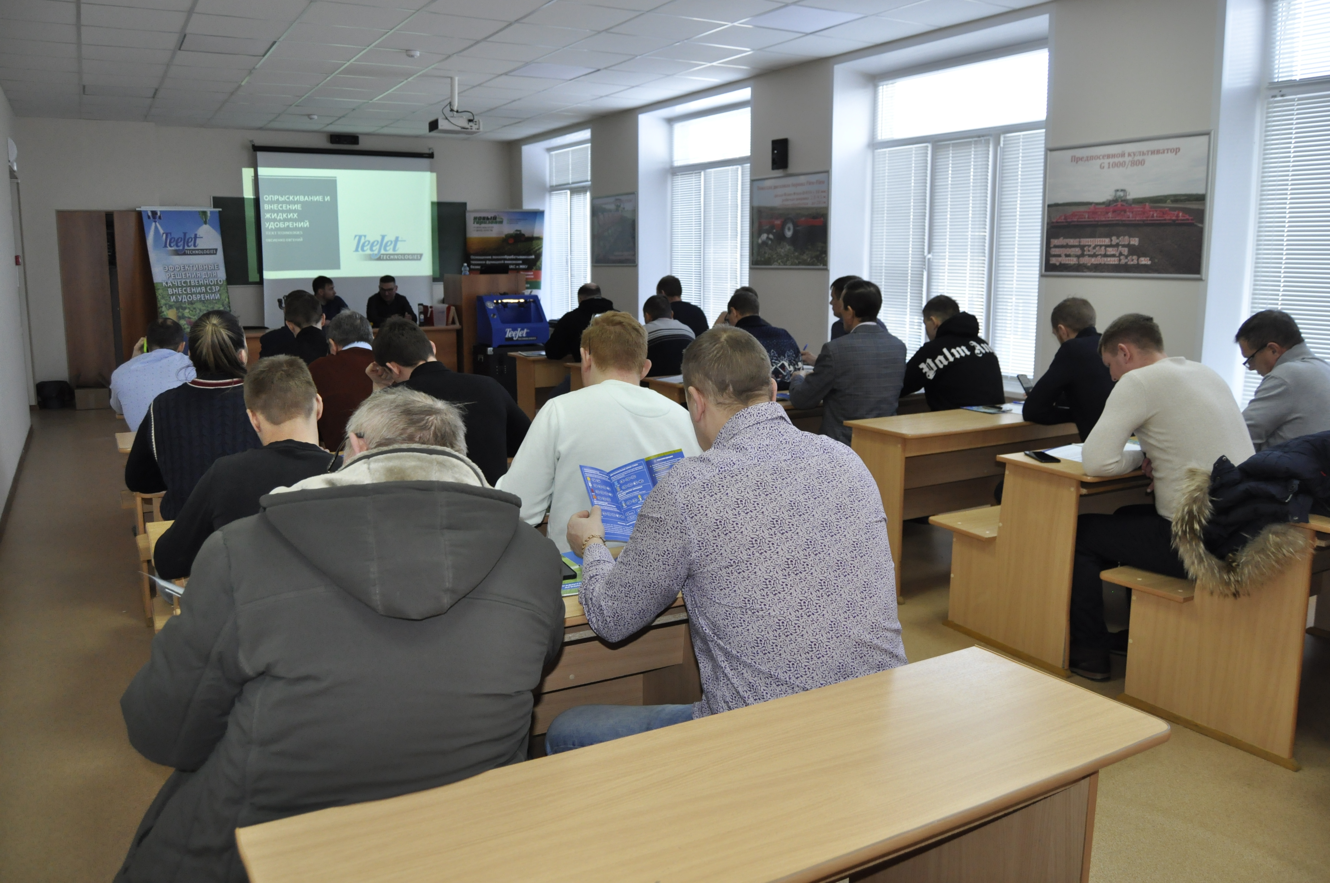 На семинаре разобрали варианты применения оборудования для внесения жидких минеральных удобрений, а также средств защиты растений. Были рассказаны тонкости процесса подбора распылителей, технического обслуживания опрыскивающей техники, покажем варианты оснащения опрыскивателей, затронем вопросы борьбы с вредителями,находящимися с обратной стороны листа. А также рассмотрены варианты агротехнических приемов внесения СЗР на выращиваемых культурах.