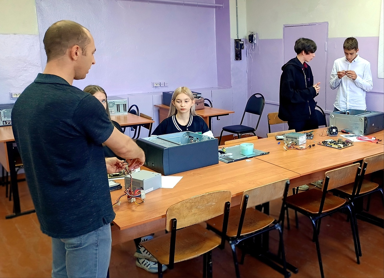 26 сентября 2023 года ученики 9-го «В» класса школы №2 прошли профессиональную пробу "Системное администрирование" в рамках проекта «Билет в будущее» на базе Кузнецкого колледжа электронных технологий. Пробу проводил ведущий инженер-программист (системный администратор) и преподаватель спец.дисциплин Василий Николаевич Солдатов. За время пробы ребята познакомились с разнообразием направлений данной профессии и получили не только теоретические знания, но и практические навыки сборки компьютера. Ребята узнали о том, что представляет собой работа системного администратора; изучили комплектующие компьютера; познакомились с технологией конфигурирования и методами сборки ПК.
