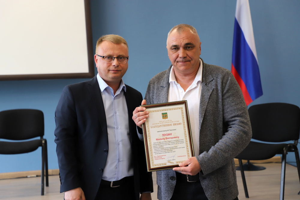 И.о. Председателя Пензенской городской Думы Олег Шаляпин вручил волонтерам Сурского края Благодарственные письма за активную гражданскую позицию и благотворительную деятельность по сбору и отправке гуманитарной помощи военнослужащим,