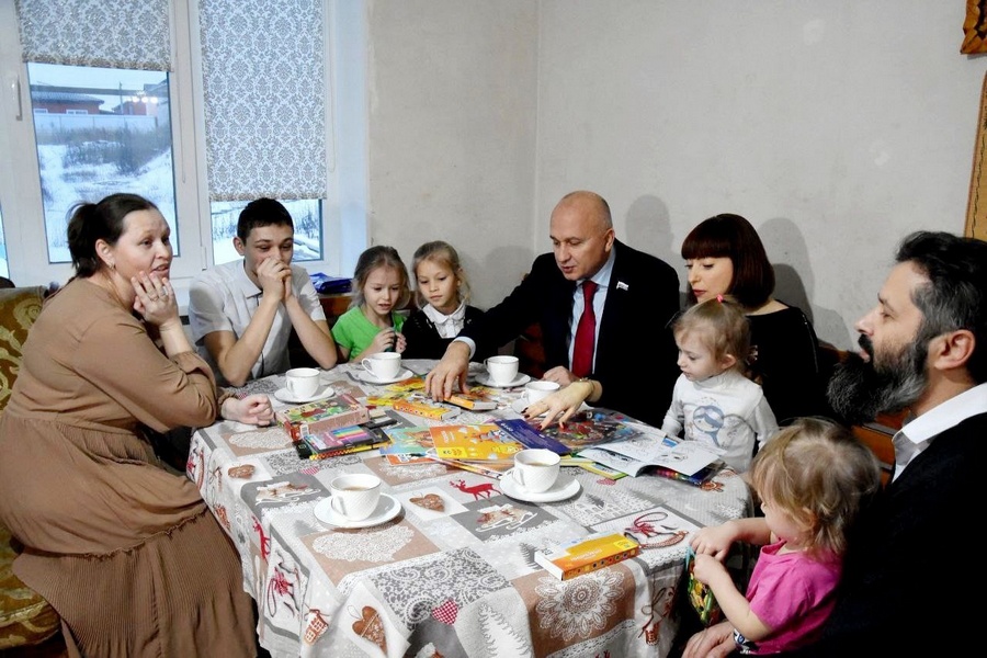 Юрий Зиновьев навестил Давида дома, где встретился с семьей Кэтанэ - отцом Владимиром, мамой Екатериной и младшими ребятишками. Депутат вручил подростку заветный подарок - смартфон, а его сестренкам - творческие и игровые наборы: настольные игры, пазлы, фломастеры, пластилин, раскраски, а также сладости.Глава многодетного семейства рассказал гостям, что детей в семье семеро, и так как Давид старший, у него много обязанностей по уходу за младшими. Основное же занятие мальчика - учеба в музыкальном колледже им. Архангельского.