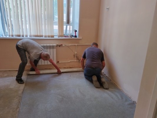 Рабочие демонтировали перегородки, отремонтировали потолки и стены, заменили полы, провели косметический ремонт и теперь укладывают напольные покрытия. После сдачи объекта будут поданы документы на лицензирование.