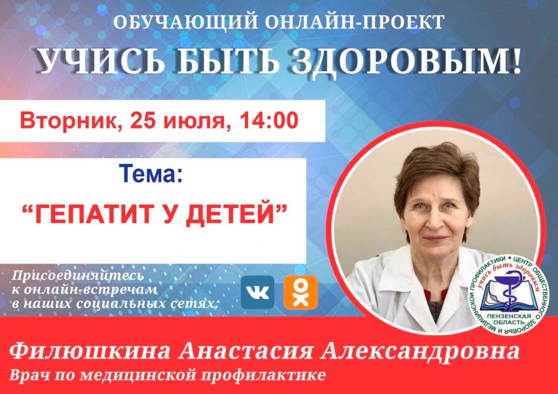 Во вторник, 25 июля, пройдет прямом эфире онлайн-проекта «Учись быть здоровым!» на тему «Гепатит у детей».
