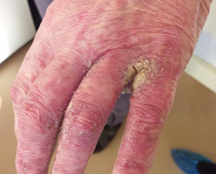 "Массивные серозные корки отмечались в области крупных складок кожного покрова, на коже кистей, живота, ягодиц, внутренней поверхности бедер, все это также сопровождалось зудом", – сообщили специалисты.