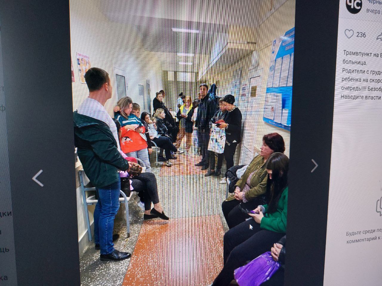 В сети появилось фото, сделанное в коридоре отделения при детской больнице. Автор поста пояснил, что всех получивших травмы детей отправили в огромную очередь.