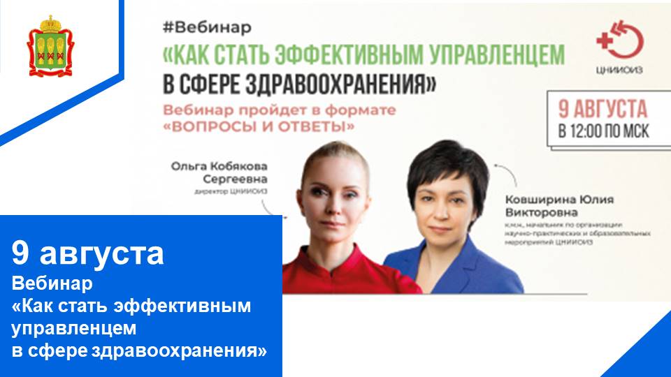 9 августа 2023 года состоится вебинар «Как стать эффективным управленцем в сфере здравоохранения».